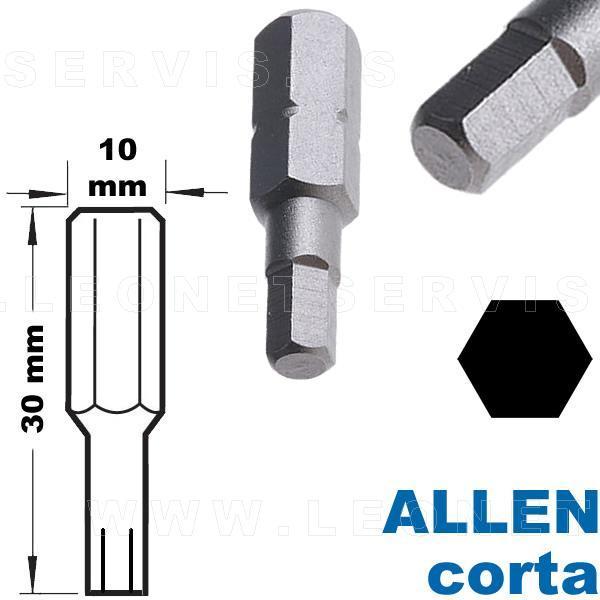 Puntas Allen cortas 30mm de acero crv (6150), para vaso de M10