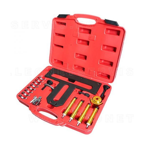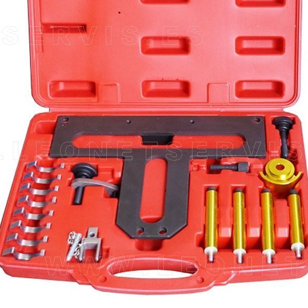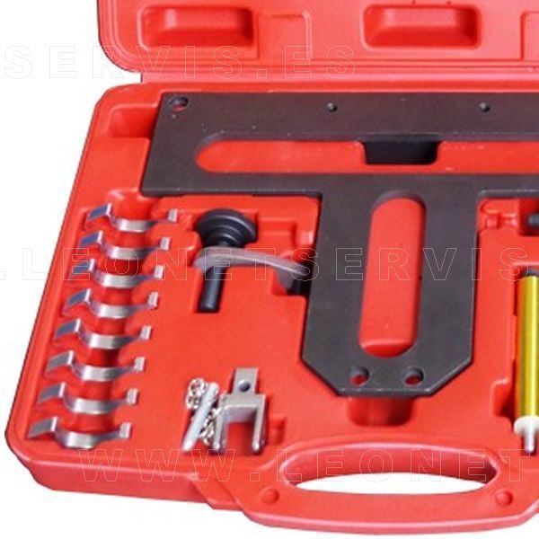 Kit para la extracción, la instalación, el desmontaje y la reconstrucción del conjunto Valvetronic/soporte del árbol de levas. Se usa junto con las herramientas de sincronización de motor Ref. 1105 que incluye las herramientas necesarias para sincronizar el motor.