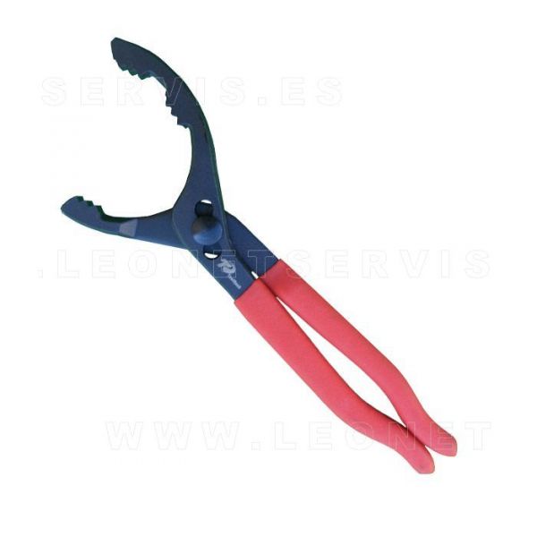 El diseño de pinza de estos alicates permite realizar las operaciones de extracción, ajuste, etc., de diferentes tipos de filtros de automóvil de manera sencilla y eficiente. La herramienta se adapta a la forma específica de los filtros facilitando su manipulación.