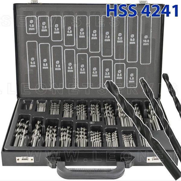 Maletin con brocas HELICOIDALES para madera y otros. Calidad HSS 4241. Medidas de 1-10 mms.