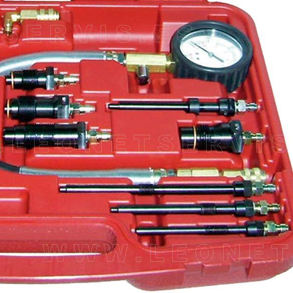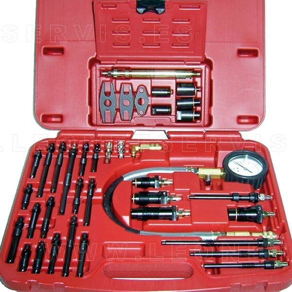Compresímetro para motores diesel con una amplia gama de adaptadores tanto para los calentadores como para los inyectores.