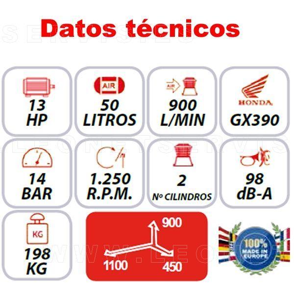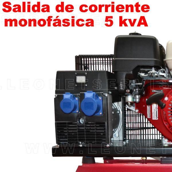 Robusto compresor de aire de 14 bar y generador eléctrico de 5kVA monofásico. Compacto y de poco tamaño. Especial para los equipos móviles y asistencias en carretera.