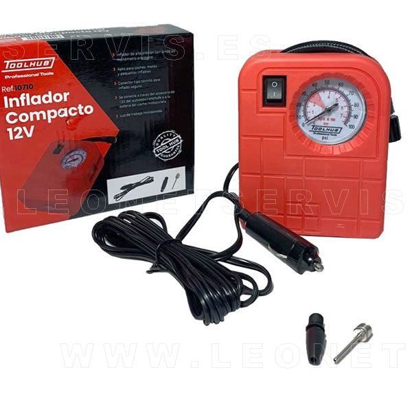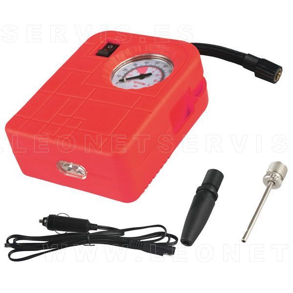 Mini compresor inflador de aire a 12 voltios. Con manómetro indicador de presión
