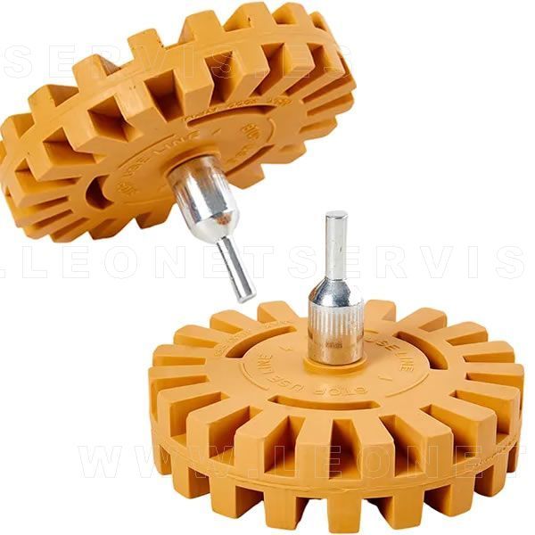 Disco de goma para limpiar el adhesivo de la llanta tras levantar las contrapesas adhesivas