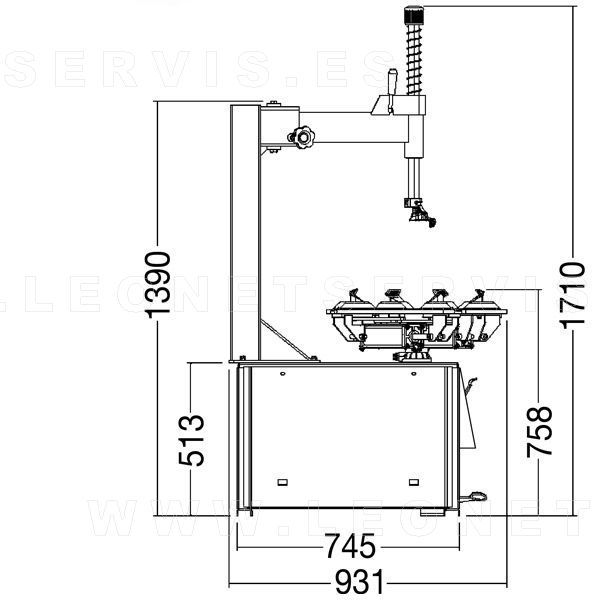 Desmontadora de neumáticos semiautomática con brazo de giro lateral