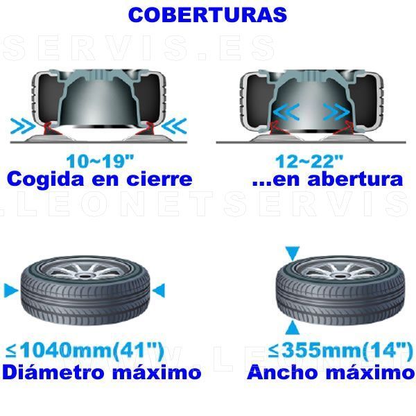 | Diámetro de llanta en agarre interior | 12" - 22" |