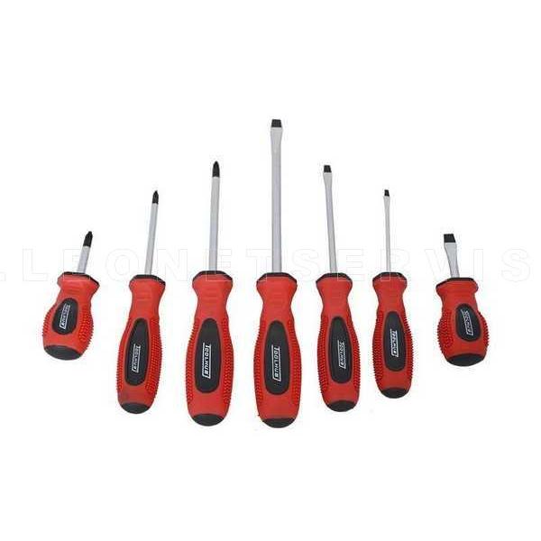 Profesional kit que contiene 7 piezas de destronilladores planos y phillips de gran calidad, cuyo mango es ergonómico.