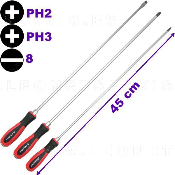 Juego de tres destornilladores EXTRA largos