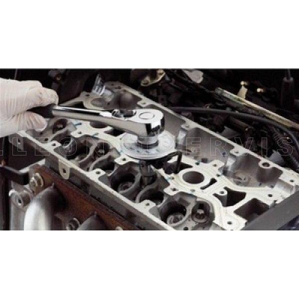 Aparato de medición que permite apretar tornillos con un par de apriete y además añadir un ángulo de giro en grados. Gracias a este instrumento se obtiene gran precisión en el apriete. Incorpora un brazo de reacción ajustable.
