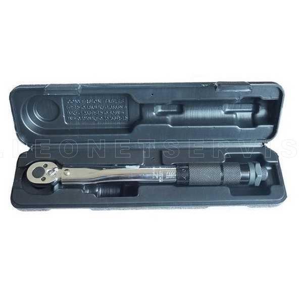 Llave dinamomátrica de gran calidad fabricada en cromo-vanadio, con un cabezal provisto de mecanismo de acción reversible es perfecta para cualquier taller. Tiene un rango de torque desde 19 a 110 Nm y una longitud total de 360mm
