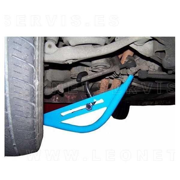 Herramienta de taller perfectamente diseñada para realizar los ajustes necesarios en el brazo de suspensión. Gracias a su diseño que incorpora un anclaje ajustable podremos ejercer la fuerza justo donde queramos.
