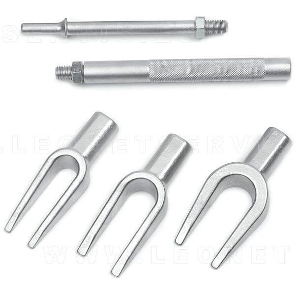 Juegos de extractores de rótulas compuesto por 5 piezas. Estos útiles de taller permiten eralizar esta operación mediante golpeo utilizando un martillo manual o neumático.