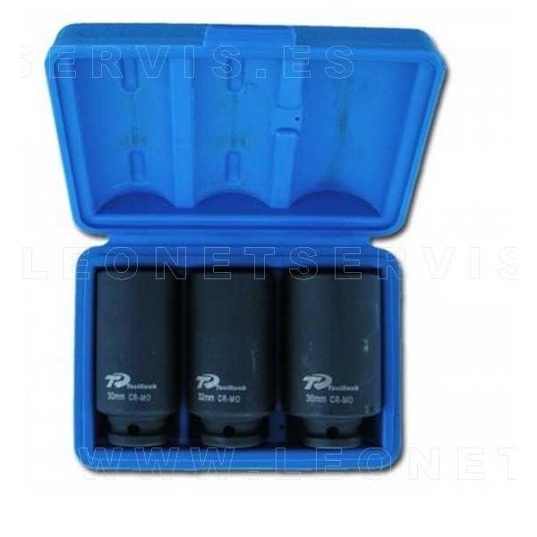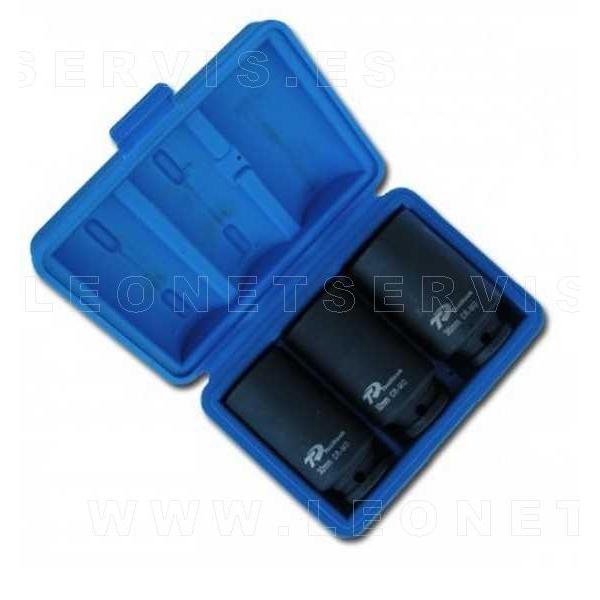 Kit compuesto por 3 distintos vasos de 12 acras para bujes, que tienen las siguientes medidas: 30, 32 y 36 mm respectivamente. Permite operar sobre los bujes con una mayor facilidad, seguridad y precisión.