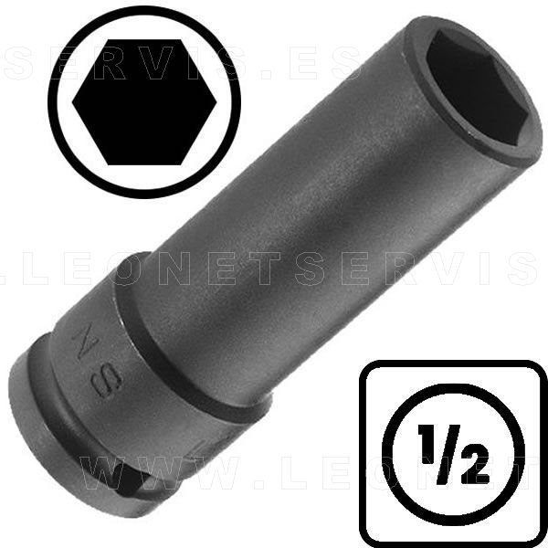 Vaso largo de 6 caras, de impacto, para cuadradillo de 1/2", especial para bujes y tuercas endurecidas