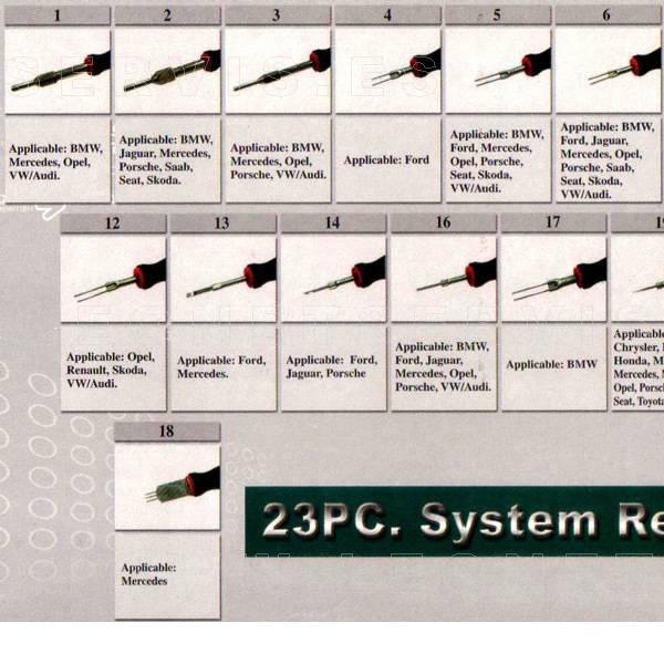 Juego de 23 herramientas para extraer fácilmente el interior de los terminales eléctricos de los modernos motores de automóviles.