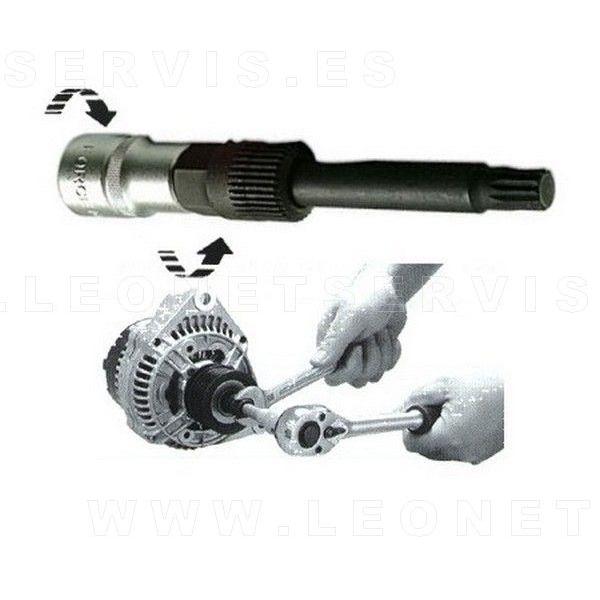 Es la herramienta ideal para desmontaje y montaje de la polea de la rueda libre, mientras se cambia el alternador o la polea.