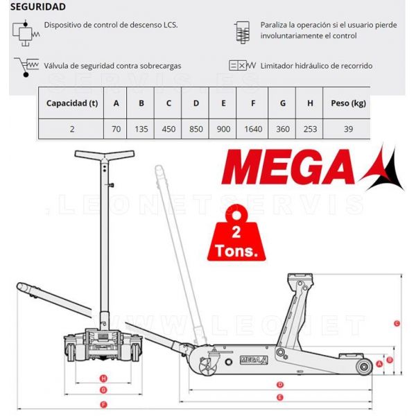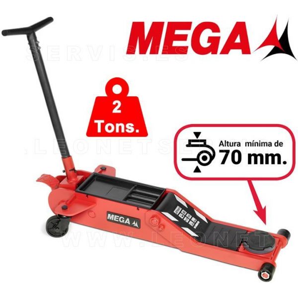 Gato de carretilla MEGA de 2 toneladas ULTRA BAJO 70 mm.