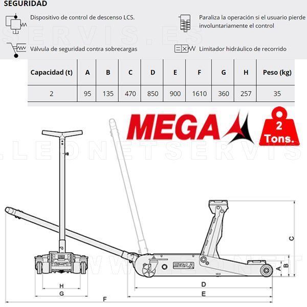 Gato de carretilla MEGA de 2 toneladas BAJO 95 mm.