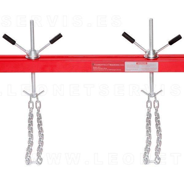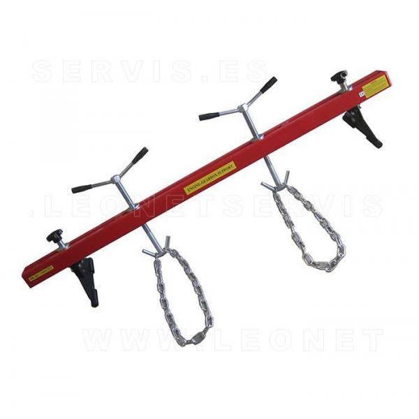 Soporte de motor diseñado para apoyar la colocación de los motores durante las operaciones de mantenimiento y conservación. También es útil como ayuda para la eliminación de las cajas de cambio y transmisiones. Se suministra con dos tramos cortos de cadena.