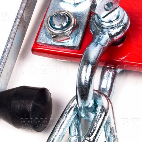 Este útil permite equilibrar sobre la grúa la carga a manipular, facilitando enormemente el trabajo del mecánico y garantizando que el proceso se realice sin riesgo alguno para la pieza. Para ello cuenta con todos los elementos necesarios: ganchos de anclaje, cadenas, etc.