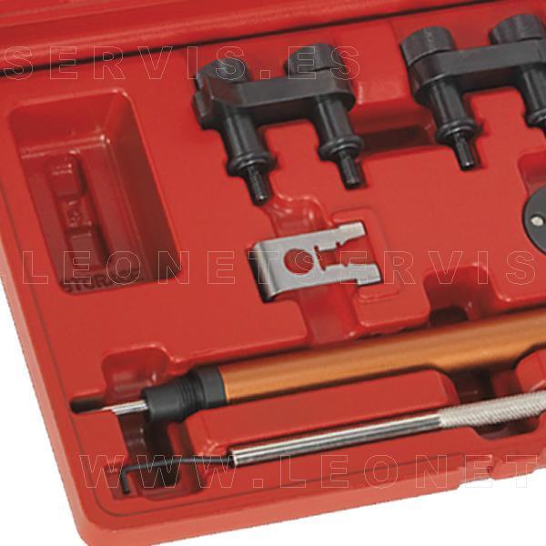 Este equipo de reglaje incluye las herramientas apropiadas para ubicar el motor en el PMS , las herramientas de bloqueo para el tensor de cadena de ambos tipos de motor y una herramienta necesaria para el tensor de la bomba de aceite.