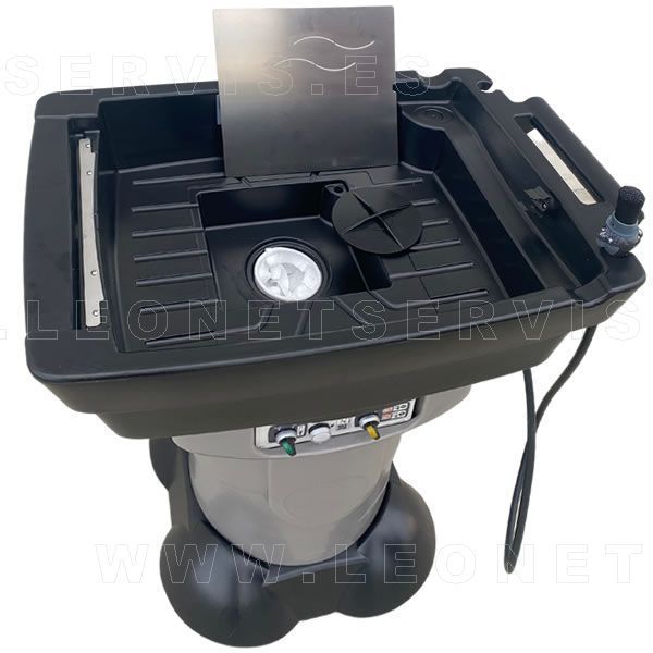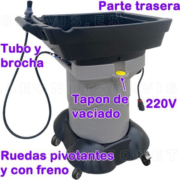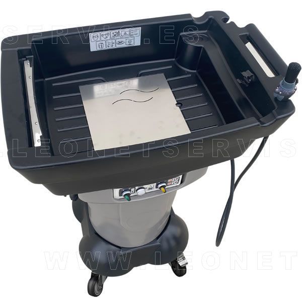 Al ser movil, se puede desplazar y poner bajo el coche que está subido en el elevador y lavar (por ejemplo la pinzas de frenos) y recoger los derrames de liquido en la propia mesa de lavado.