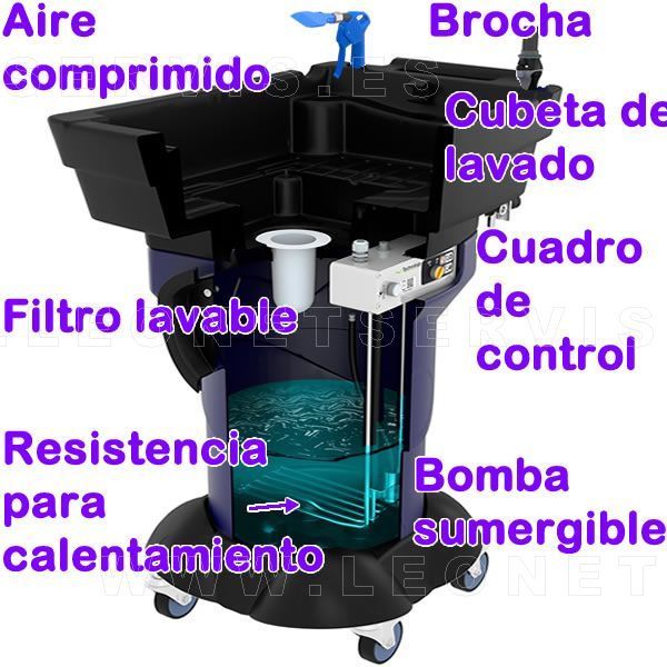GravityX3® Lavadora MOVIL de piezas. Con bomba sumergible y calentador de producto 38º . Incluye 40 litros BlueLiquid®