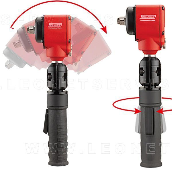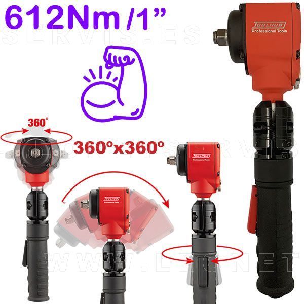 Pistola neumática angular de impacto de 1/2". 612 Nm. Rotación 360x360º