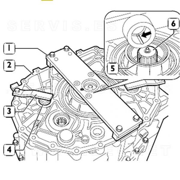 Util para el posicionamiento de árbol primario durante desmontaje del árbol secundario de la caja de cambios
