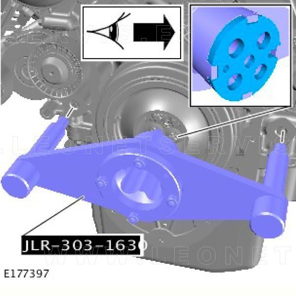 Util para bloquear la polea del cigüeñal de Land Rover 2.0 D.