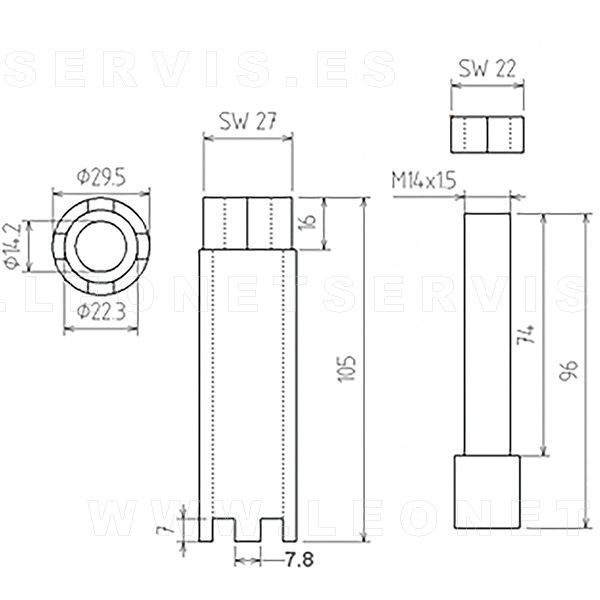 Vaso largo almenado y de doble uso para extraer inyectores MERCEDES, MAN, SCANIA