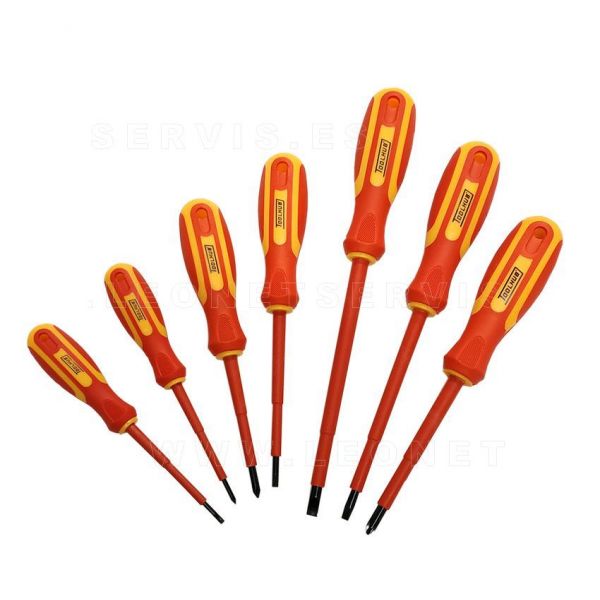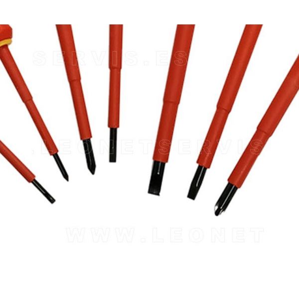 Tipo: juego de destornilladores con aislamiento eléctricoMaterial: acero al cromo-vanadio