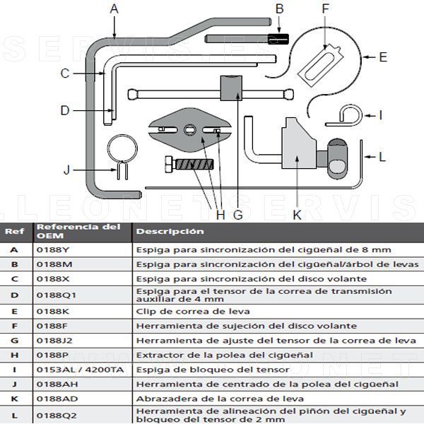 Este kit proporciona las herramientas necesarias para ajustar la sincronización de válvulas en la amplia gama de motores diésel DW10 y DW12