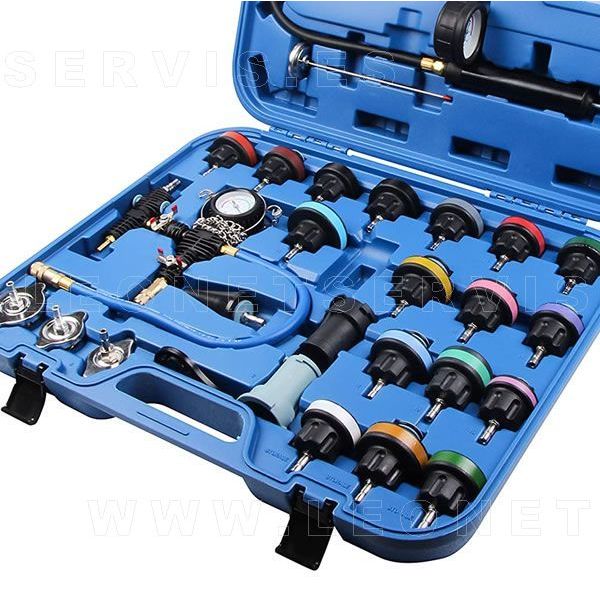 Kit para comprobar el circuito de refrigeración y llenado del liquido refrigerante, 28 piezas