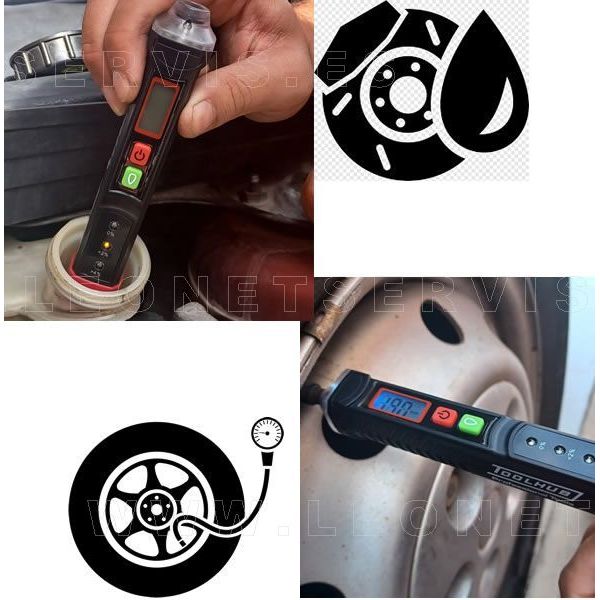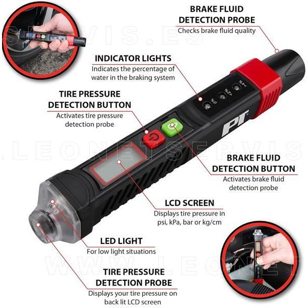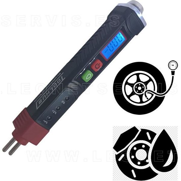 Comprobador de presión de aire de neumáticos y calidad del liquido de frenos. Dos en uno