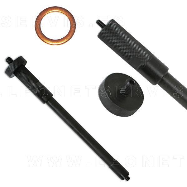 Herramienta que se usa especialmente para quitar e instalar las arandelas de cobre en los inyectores diesel de una forma rápida y efectiva además de ser utilizado para quitar el retén de cobre cuando se queda pegado dentro. Para retenes con diámetro interno de 7.5 a 10 mm.