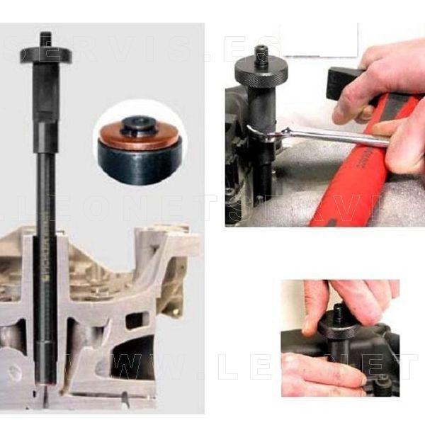 Se trata de un instrumento que ha sido fabricado en cromo vanadio y tiene un alcance de 240mm y que está diseñado para instalar las arandelas de cobre mencionadas anteriormente en profundidad en el sentado de los inyectores.Para retenes con diámetro interno de 7.5 a 10 mm.