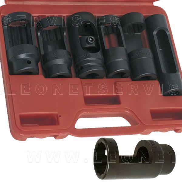 Conjunto de vasos diseñados para trabajos en inyectores disel. Este kit indispensable para el taller incluye vasos con las siguientes medidas: 21, 22, 22 largo, 27, 28 y28 mm. Disponen además de collar de localización