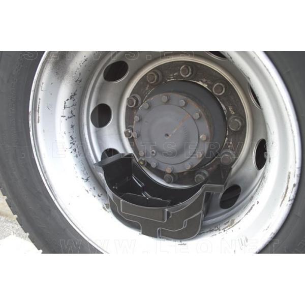 Bandeja con forma especial para recoger el aceite del eje de la rueda