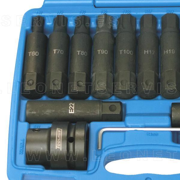 Juego de puntas de impacto de cuadradillo Torx y Allen. Cuadradillo de 3/4 y 1"