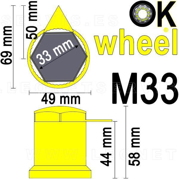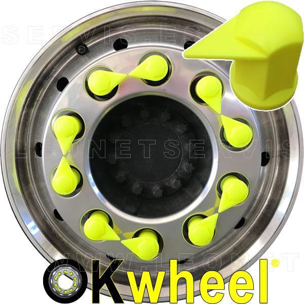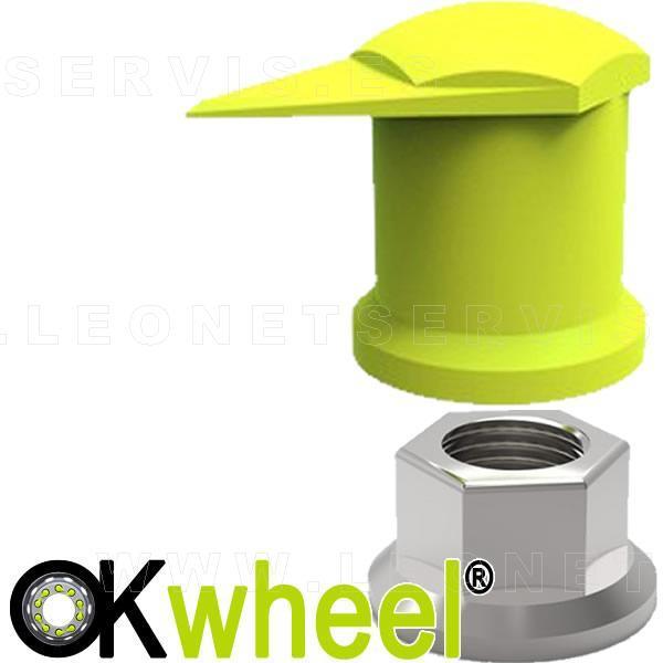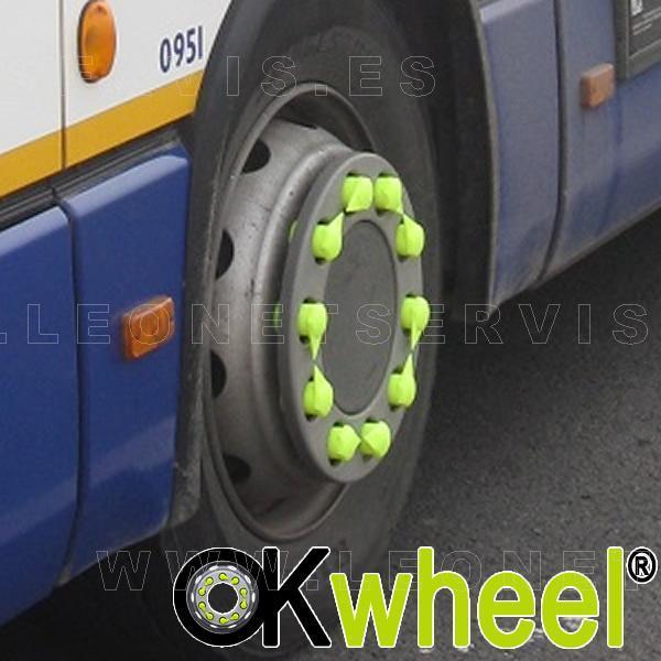 Tapón OKwheel® con indicador superior de tuercas flojas para ruedas de vehículos industriales.
