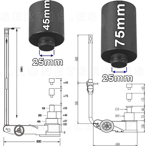 Juego de 2 extensiones para gato oleo neumático 15/30 toneladas portátil