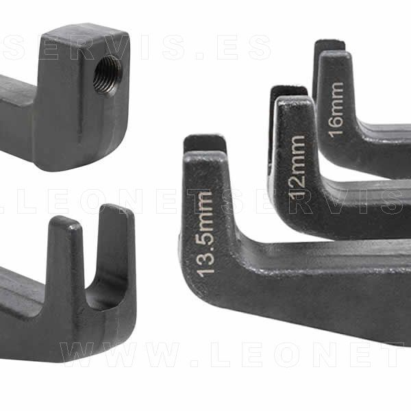 Este juego de 3 adaptadores de alta calidad está diseñado específicamente para su uso con extractores de inyectores neumáticos. Fabricados con materiales duraderos y de precisión, garantizan un ajuste perfecto para un desmontaje seguro y eficaz de inyectores en motores diésel. Ideal para talleres mecánicos que buscan herramientas confiables y versátiles para el mantenimiento de vehículos.