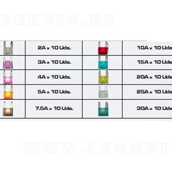 Surtido de fusibles de formato MINI para protección de circuítos eléctricos, para la mayoría de automóviles, motos y furgonetas.
