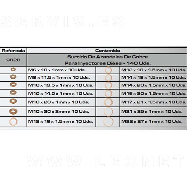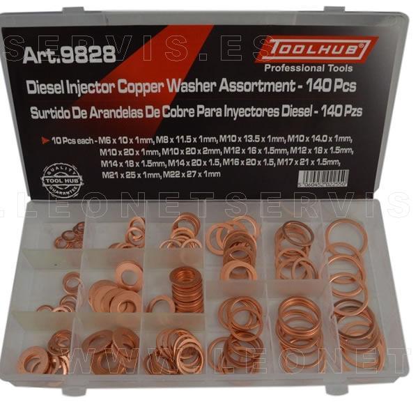 Surtido de arandelas de cobre planas para inyectores diesel, 140 piezas