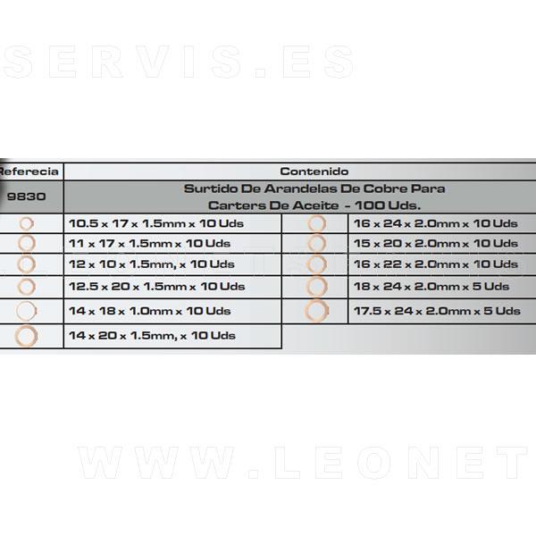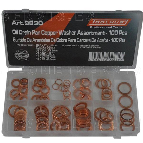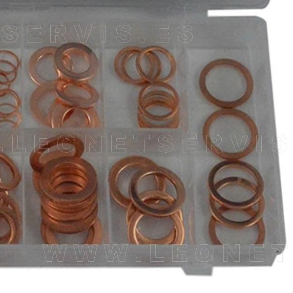 Surtido y repuestos de arandelas de cobre para tapón de carter.