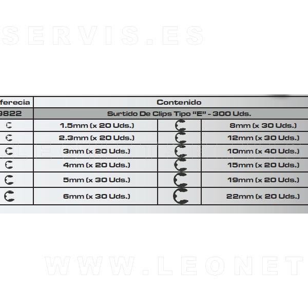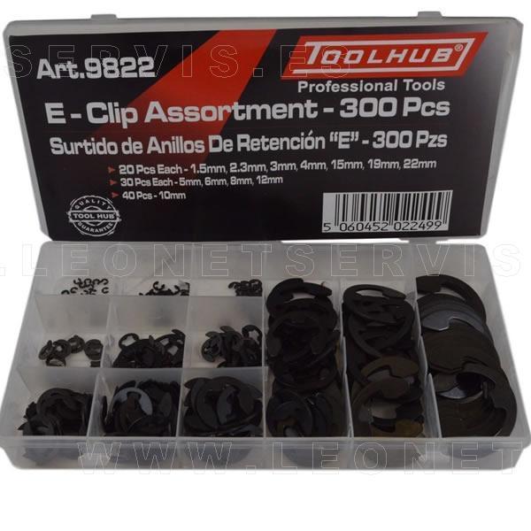 Surtido de circlip externos tipo E, 300 unidades