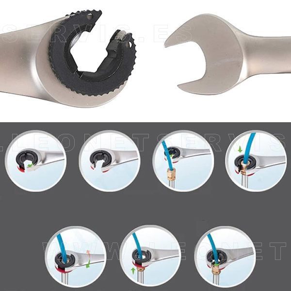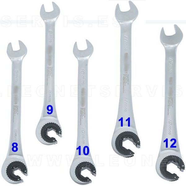 Juego de llaves de carraca abiertas para racores y tuberías. 5 piezas