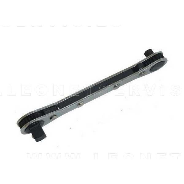 Funcional y versátil carraca reversible con doble cabeza de 1/4" y 3/8" con una longitud de 140mm, lo que posibilita su empleo en multitud de operaciones manuales.