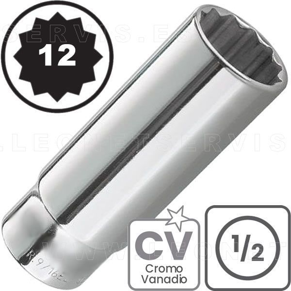 Vasos LARGOS de 1/2", 12 caras. Acero CRV